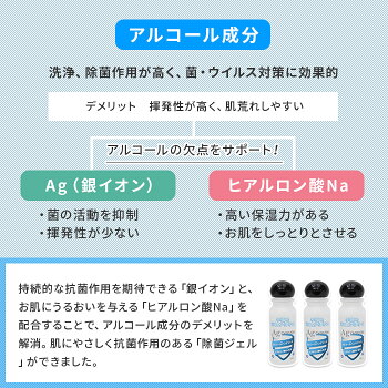 【p2】こちらの商品は4月中旬〜末頃の入荷予約販売です 【10個セット】除菌 アルコールハンドジェル(抗菌 保湿 除菌ジェル) いつでもどこでも除菌できる 持ち歩きに便利なミニボトル 「アルコールハンドジェル」は、アルコール成分に銀イオンを配合し、手肌にやさしい保湿剤を加えた、除菌ジェル。